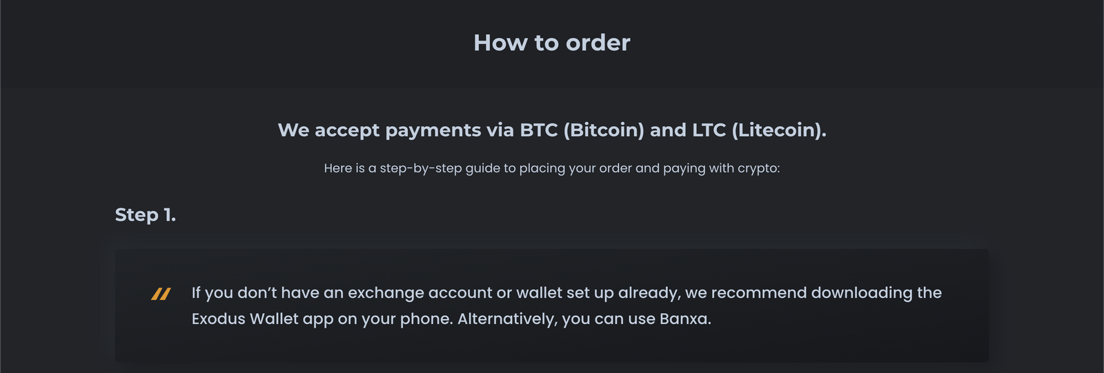 Here is a step-by-step guide to placing your order and paying with crypto: