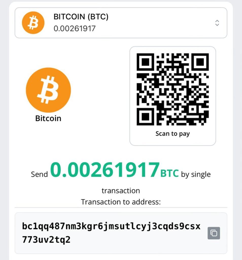 Copy the Wallet address: bc1qn84uek9n7h5qxfrh0t2mktzl6ka6av47gzktya